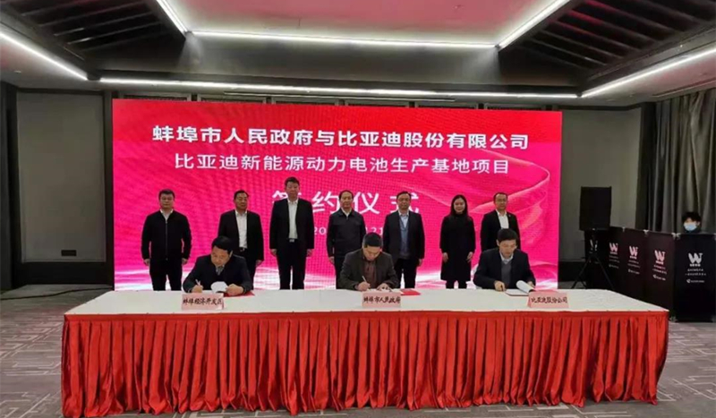 12月21日,蚌埠市政府與比亞迪股份有限公司在合肥舉行“比亞迪新能源動力電池生產基地項目”簽約。