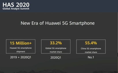 據華為消費者業務戰略Marketing總裁邵洋介紹,華為5G智能手機在今年一季度于中國市場取得了55.4%的市占率,全球市占率為33.2%。
