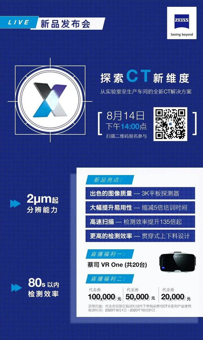 8月14日下午14:00,蔡司ZEISS將舉辦以“探索CT新維度”為主題的線上新品發布會。