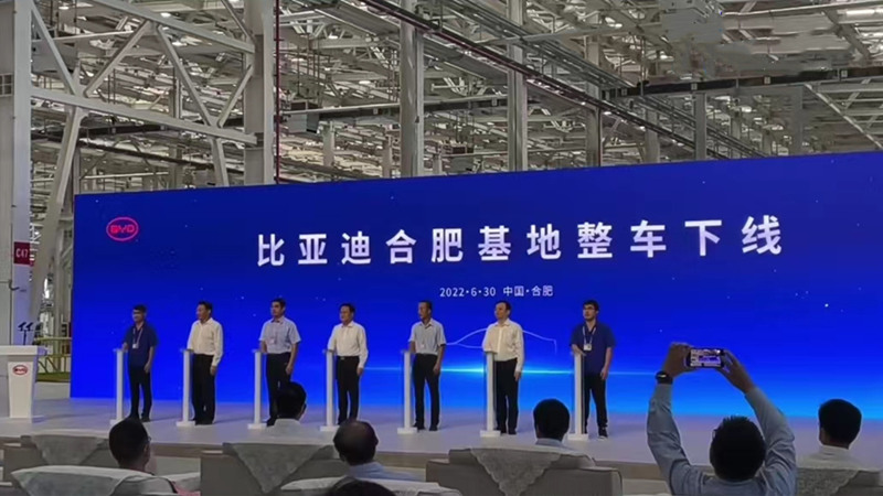 6月30日,比亞迪合肥基地項目的第一輛整車下線儀式在合肥市長豐縣下塘鎮舉行。