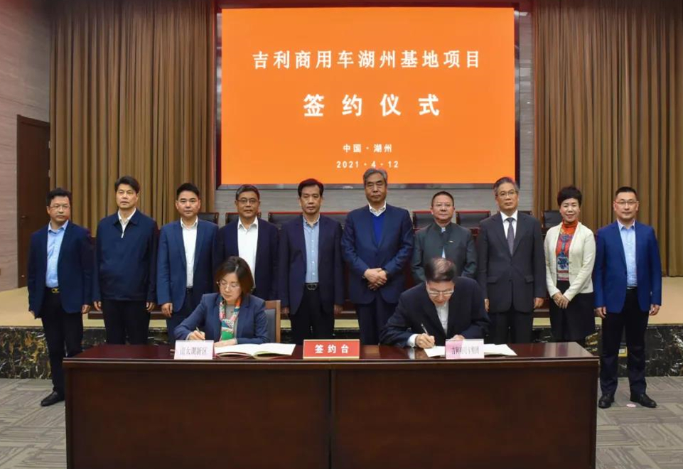 4月12日,浙江湖州市南太湖新區管委會與吉利商用車集團簽署合作協議,吉利商用車湖州基地項目落戶南太湖新區。