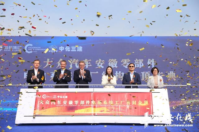近日(11月16日),隨著最后一根鋼結構的吊裝完成,大眾汽車安徽零部件電池系統工廠結構封頂。