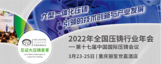 2022全國壓鑄年會:3月重慶與您探討大型一體化壓鑄