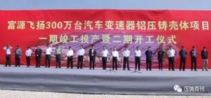 4月24日,富源飛揚300萬臺汽車變速器鋁壓鑄殼體一期項目竣工投產暨二期項目開工儀式在云南曲靖市富源縣舉行。