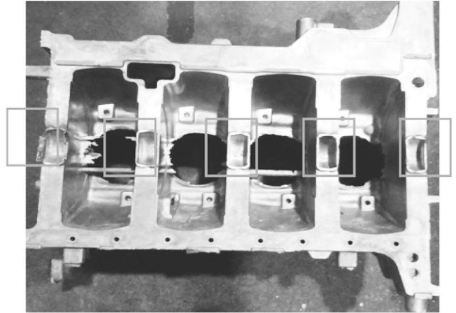 本課題采用抽芯改擠壓并聯(lián)動(dòng)插芯噴涂功能,解決了發(fā)動(dòng)機(jī)前罩殼零件在實(shí)際生產(chǎn)中出現(xiàn)縮孔導(dǎo)致的油道串油泄漏現(xiàn)象。