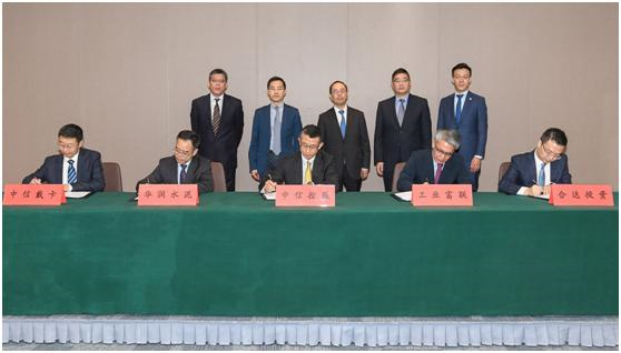 5月29日,中信控股、中信戴卡、華潤水泥、工業富聯在北京簽署合資協議暨項目合作框架協議。
