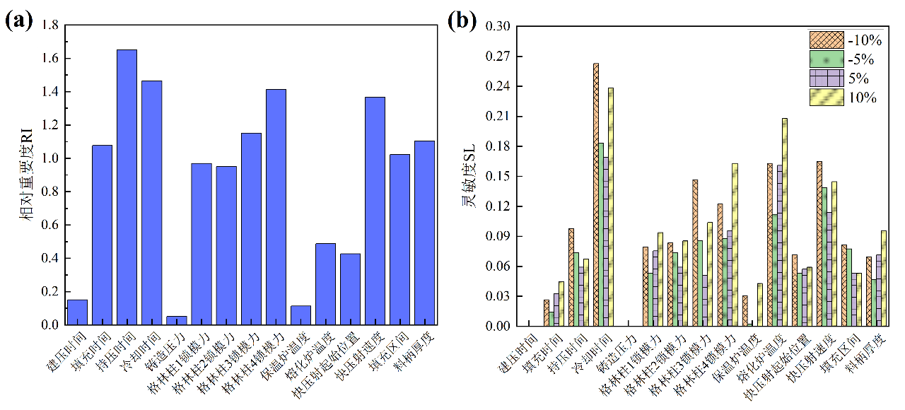 本研究獲得15種壓鑄關(guān)鍵工藝參數(shù)與鑄件品質(zhì)的影響權(quán)重排序,為大型一體化壓鑄過程智能控制提供參考。
