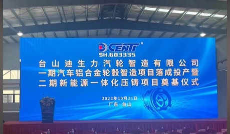 10月21日,臺山迪生力汽輪智造有限公司一期汽車鋁合金輪轂制造項目投產暨二期新能源汽車鋁合金一體化壓鑄項目奠基儀式在廣東省臺山市舉行。