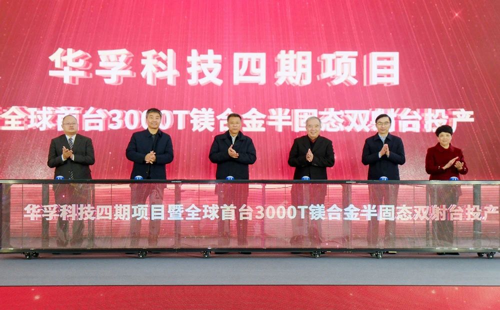 2024年12月28日上午,華孚科技為其馬鞍山四期項目暨全球首臺3000T鎂合金半固態雙射臺注射成型機舉行了簡約而隆重的投產儀式。