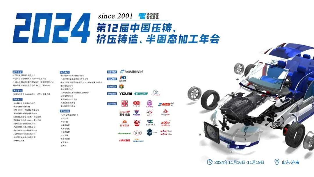 2024第十二屆中國壓鑄、擠壓鑄造、半固態(tài)加工年會于11月16-19日在濟南美悅云禧酒店舉辦。