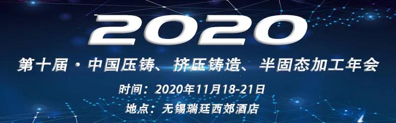 2020年(第十屆)中國壓鑄、擠壓鑄造、半固態(tài)加工年會將于2020年11月18-21日在無錫瑞廷西郊酒店舉行。