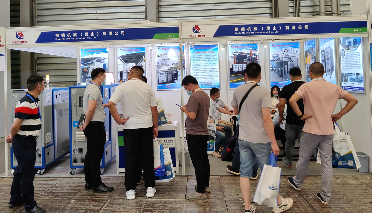 攜德機械(昆山)有限公司,為海天金屬現(xiàn)場展示的壓鑄島,配套提供模具溫度控制解決方案,展示了其經優(yōu)化升級的壓鑄專用模溫機。