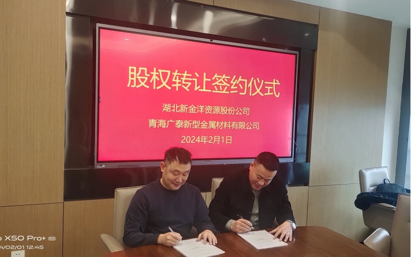 湖北新金洋資源股份公司于2月1日簽訂收購青海廣泰新型金屬材料有限公司100%股權合同,并進入托管期。