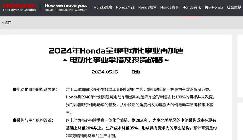 本田將在2040年實(shí)現(xiàn)純電動車和燃料電池汽車全球銷售占比100%的目標(biāo)。