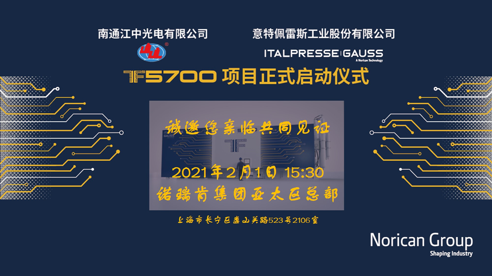 2021年2月1日,南通江中光電有限公司(“江中光電”)與意特佩雷斯高斯共同啟動5700T無曲拐兩板壓鑄機項目。