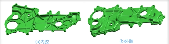 本研究以發(fā)動機前蓋壓鑄模為例,介紹其澆注系統(tǒng)和排溢系統(tǒng)設計過程及設計方法。