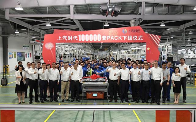 ,6月18日,上汽時代第100000套電池包下線儀式在上汽時代Pack車間舉行。