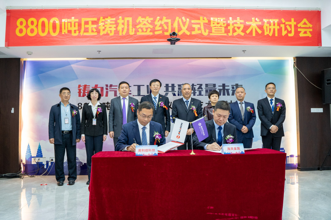 4月10日,美利信科技向海天金屬購買了一套HDC8800噸超大型壓鑄機,并于美利信現(xiàn)代工業(yè)園隆重舉行了簽約儀式暨技術(shù)研討會。