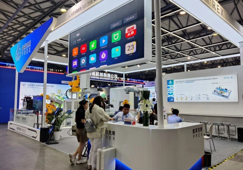 在本屆展會上,上海普萊克斯現場展示了其豐富的產品線,包括工業機器人本體、取件裝置、噴涂系統、去毛刺工作站、去渣包裝置等壓鑄自動化設備及輔助裝置。