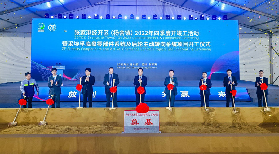 11月19日,采埃孚張家港基地底盤零部件系統(tǒng)及后輪轉(zhuǎn)向系統(tǒng)(AKC)項目奠基儀式在張家港經(jīng)開區(qū)(楊舍鎮(zhèn))舉行。