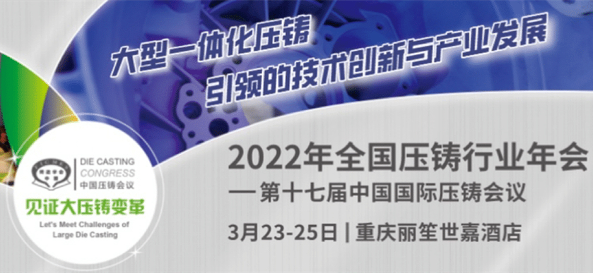 2022年全國壓鑄行業(yè)年會將于3月23-25日在重慶隆重召開。