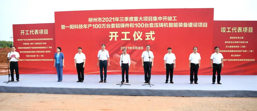 9月8日,一陽科技年產100萬臺套鋁鑄件和100臺套壓鑄機智能裝備建設項目的開工儀式,在柳州市柳東新區舉行。