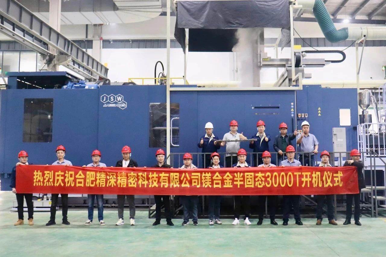 合肥精深精密科技有限公司成功實現了3000T半固態鎂合金注射成型機的開機運行。