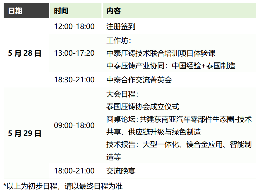 為什么這場會議值得關(guān)注?中國、泰國、日本、越南、新加坡及德國等國家的行業(yè)專家、車企代表與壓鑄領(lǐng)軍企業(yè)將齊聚一堂,深入探討如下熱點(diǎn)議題:
