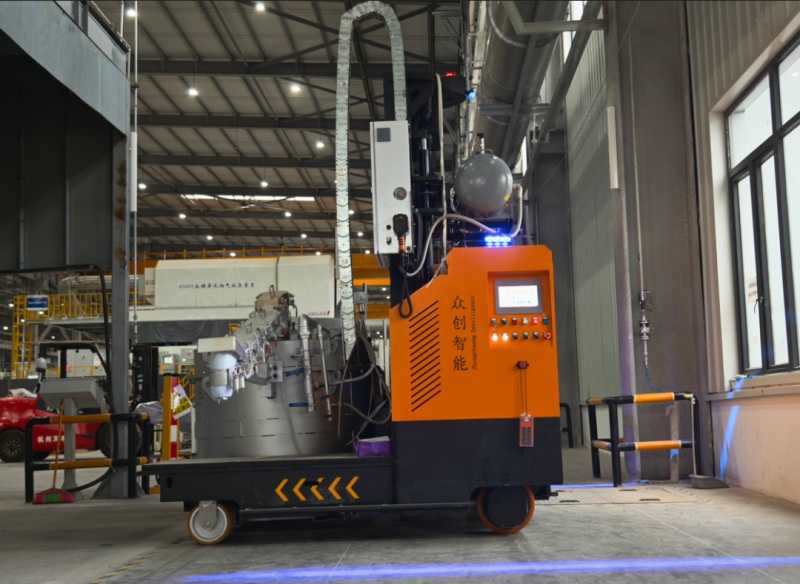 創新技術:一種基于AGV的在線配湯方法及其操作系統 申報企業:寧波眾創智能科技有限公司 創新背景 ◆ 傳統的鋁水包轉運采用人工駕駛叉車進行轉運和卸料,一旦發生鋁水包泄漏或傾翻,會直接威脅到操作人員的生命安全。 ◆ 壓鑄機缺料及對應料號只能依靠人力判斷,多有發生加料不及時和加錯鋁料牌號現象。 ◆ 由于壓鑄車間24小時連續運行的特點,加之熱加工的特性,聲音嘈雜的環境中人員容易困乏,叉車運行過程中發生碰撞幾率較高。