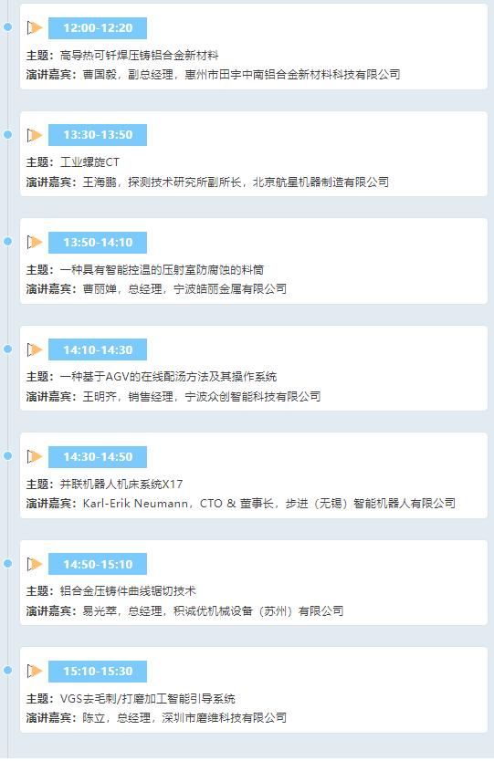 創(chuàng)新技術(shù):VGS去毛刺/打磨加工智能引導系統(tǒng) 榮獲“2025年度全國壓鑄行業(yè)創(chuàng)新技術(shù)”稱號的企業(yè)將在7月16日(10:20-15:30)上海新國際博覽中心N3館 N3D10汽車輕量化論壇區(qū)舉辦的“2025年度創(chuàng)新技術(shù)及產(chǎn)品發(fā)布會”活動中現(xiàn)場宣講該項創(chuàng)新技術(shù)及產(chǎn)品,敬請關(guān)注! 演講日程 Agenda