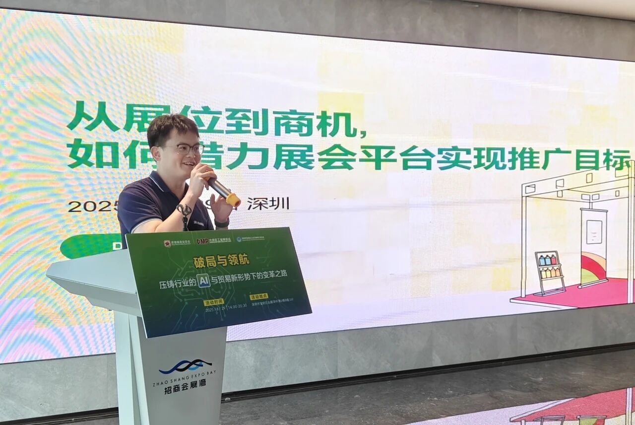 主辦方為劉志國(guó)先生頒發(fā)感謝牌 在核心應(yīng)用場(chǎng)景方面,AI在個(gè)人層面覆蓋了內(nèi)容校對(duì)、圖片處理等降本增效的場(chǎng)景;在企業(yè)(壓鑄行業(yè))層面,能夠賦能跨語(yǔ)言溝通、營(yíng)銷客服、生產(chǎn)全流程(從原材料研發(fā)到檢測(cè)),還提及了中鑄AI等行業(yè)工具。 劉志國(guó)先生提出了AI時(shí)代的12個(gè)認(rèn)知段位,建議個(gè)人和企業(yè)高頻、全場(chǎng)景地使用AI。他展望了壓鑄行業(yè)AI自動(dòng)設(shè)計(jì)、工廠大腦等潛在場(chǎng)景,指出AI改造傳統(tǒng)領(lǐng)域以及新物種帶來(lái)的新訂單機(jī)會(huì),強(qiáng)調(diào)企業(yè)應(yīng)盡早使用AI搶占生態(tài)位。 汪楠先生:從展位到商機(jī):展商如何借力DMP平臺(tái)生態(tài)打造壓鑄行業(yè)影響力 DMP工博會(huì)市場(chǎng)部經(jīng)理汪楠先生圍繞線下展會(huì)(聚焦壓鑄行業(yè))的價(jià)值與參展策略,以“從展位到商機(jī):展商如何借力DMP平臺(tái)生態(tài)打造壓鑄行業(yè)影響力”為題作了報(bào)告。 汪楠先生明確了線下展會(huì)對(duì)中小型企業(yè)的核心價(jià)值,指出在現(xiàn)階段,中小型企業(yè)需要更積極地參展。線下展會(huì)具有三大不可替代性:一是現(xiàn)場(chǎng)沉浸式體驗(yàn),參展者可以觸摸產(chǎn)品、觀察合作方的微表情;二是行業(yè)集群效應(yīng),展會(huì)匯聚了材料商、設(shè)備商、客戶、專家等,如DMP展會(huì)曾有1900 +展商、14萬(wàn)人流;三是建立信任度的機(jī)會(huì),面對(duì)面溝通更容易建立信任,遠(yuǎn)超線上社交。