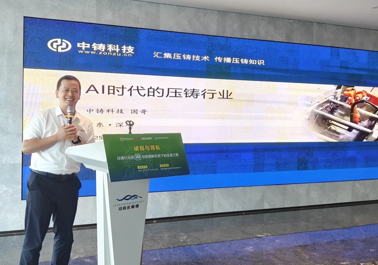 主辦方為徐曉迪教授頒發(fā)感謝牌 在中美制造業(yè)對(duì)比方面,中國(guó)制造業(yè)在貿(mào)易戰(zhàn)中逆勢(shì)增長(zhǎng)。到2025年“中國(guó)制造2025”收官之際,中國(guó)在10大核心領(lǐng)域中有4個(gè)位居世界第一,5個(gè)進(jìn)入世界決賽圈,占全球制造業(yè)的比重超過(guò)1/3,超過(guò)了美國(guó)、日本、德國(guó)、英國(guó)和法國(guó)的總和,未來(lái)這一優(yōu)勢(shì)可能進(jìn)一步擴(kuò)大,這也引發(fā)了西方的擔(dān)憂。 在俄烏沖突中,俄羅斯憑借武器“管夠”撐住了局面,而美國(guó)因去制造業(yè)導(dǎo)致武器生產(chǎn)能力不足、庫(kù)存告急,這凸顯了制造業(yè)對(duì)戰(zhàn)爭(zhēng)勝負(fù)及國(guó)家實(shí)力的關(guān)鍵作用。目前,美國(guó)在鋼鐵、造船等產(chǎn)業(yè)能力遠(yuǎn)遜于中國(guó)。 中美博弈的焦點(diǎn)在于,特朗普政府通過(guò)高稅、要求投資等方式推動(dòng)制造業(yè)回流,重點(diǎn)針對(duì)半導(dǎo)體、鋼鐵、稀土、造船等與戰(zhàn)爭(zhēng)和科技相關(guān)的領(lǐng)域。中美在芯片(中國(guó)補(bǔ)短板)、稀土(美國(guó)補(bǔ)短板)等領(lǐng)域互相“卡脖子”,博弈十分激烈。 展望未來(lái),人工智能是第四場(chǎng)工業(yè)革命的核心,具身機(jī)器人、無(wú)人駕駛、低空飛行器等領(lǐng)域?qū)⒊蔀樽兏锏闹攸c(diǎn),中美是主要競(jìng)爭(zhēng)者。徐曉迪教授認(rèn)為,大灣區(qū)在AI領(lǐng)域具有優(yōu)勢(shì),未來(lái)10年中美或通過(guò)臺(tái)海問(wèn)題(潛在引爆點(diǎn))或科技革命決出勝負(fù)。他建議企業(yè)目前觀望中美貿(mào)易談判,同時(shí)積極擁抱AI。 劉志國(guó)先生:AI時(shí)代的壓鑄行業(yè),破解行業(yè)痛點(diǎn)路徑 中鑄科技COO劉志國(guó)先生以“AI時(shí)代的壓鑄行業(yè),破解行業(yè)痛點(diǎn)路徑”為題,聚焦AI在多領(lǐng)域尤其是壓鑄行業(yè)的應(yīng)用,為參會(huì)者帶來(lái)了新的思路。 劉志國(guó)先生回顧了AI的發(fā)展歷程,2022年底ChatGPT的出現(xiàn)推動(dòng)了AI走向消費(fèi)級(jí),2023年國(guó)內(nèi)企業(yè)紛紛跟進(jìn),2024年進(jìn)入多模態(tài)階段,2025年低功耗大模型出現(xiàn)且國(guó)家高度重視,AI已成為中美博弈的關(guān)鍵領(lǐng)域。