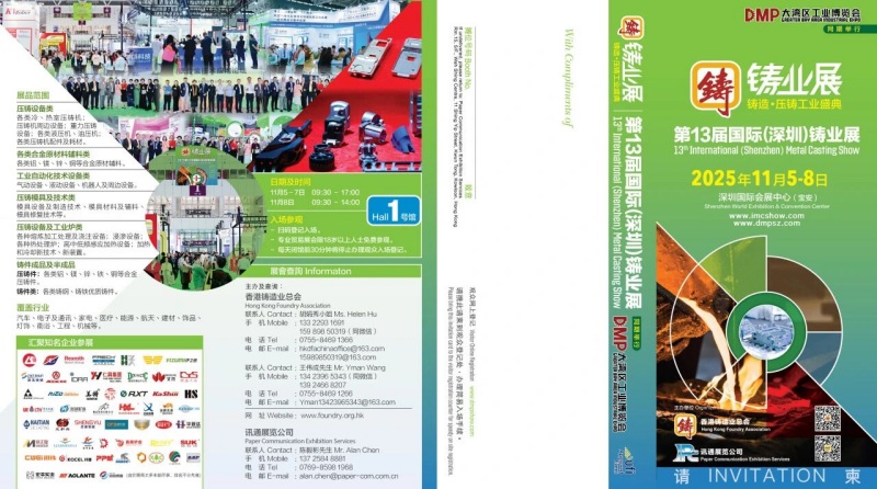 ![]() 金秋十一月,鵬城深圳將迎來工業(yè)領(lǐng)域的年度盛會。記者從展會主辦方獲悉,第 13 屆國際(深圳)鑄業(yè)展與第 26 屆 DMP 大灣區(qū)工業(yè)博覽會將于2025年11 月 5 日至 8 日在深圳國際會展中心同期舉辦。兩大展會攜手走過十余載,以資源共享、協(xié)同發(fā)展的獨(dú)特模式,成為粵港澳大灣區(qū)制造業(yè)高質(zhì)量發(fā)展的重要助推器,書寫著產(chǎn)業(yè)協(xié)作與創(chuàng)新升級的新篇章。
