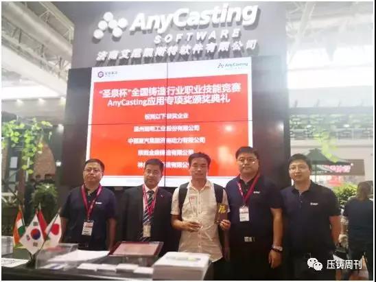 圣泉展臺 在中國鑄造協會第八屆會員代表大會上,選舉產生了第八屆理事會和第八屆監事會,唐地源總裁被選為副會長。圣泉集團市場總監王軍代表公司領取了“第三屆中國鑄造行業鑄造輔助材料分行業排頭兵企業”獎牌。 圣泉有多篇技術文章收錄論文集,部分進行了會議交流:“超級過濾技術在鑄造中的應用”、“鑄造CAE模擬分析閥體內腔縮凹缺陷”、“高精度透氣發熱保溫冒口”、“鑄造朱雀工坊-鑄造工藝設計快手”、“基于CAE技術探究局部加壓對壓鑄件收縮缺陷的影響”。 AnyCasting:推介其V6.5軟件的應該成果 濟南艾尼凱斯特軟件有限公司系濟南圣泉集團和韓國AnyCasting Software Co., Ltd.以及AnyCasting Co., Ltd.共同出資設立的中韓合資企業,系國際技術領先的鑄造仿真模擬軟件制造商之一。本次展會上,AnyCasting與圣泉集團一道集中展示,模擬分析軟件與鑄造產品相結合,很直觀的為觀眾展示了AnyCasting V6.5版本在實用性、速度及工作效率、數據庫功能等方面有很強的實操性。