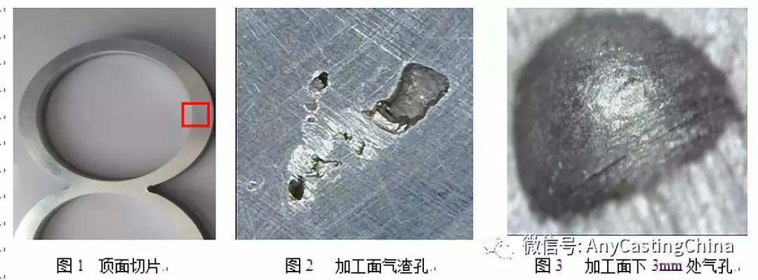 ![]() 摘要:本文采用數值模擬分析方法,利用AnyCasting鑄造模擬軟件對高壓件產品表面氣渣孔成因進行了探究。通過AnyCasting鑄造模擬軟件對鑄件充型過程進行分析,著重分析了充型過程中鋁液前端氧化物的形成過程,并輔助含氣量及空氣壓力判據進行分析。試驗結果顯示,當氧化物和含氣量共同作用與鑄件同一位置時,則形成加工表面氣渣孔的概率較大。 關鍵詞:數值模擬; AnyCasting; 氧化物 * 產品缺陷展示 如圖1~3所示,某缸體頂面加工面氣渣孔缺陷,在氣渣孔下方有氣孔出現,對缺陷件進行統計分析,其缺陷位置固定。此缺陷在第一次小批量生產中報廢率為5%,造成廢品率升高。由于該缺陷是氧化夾渣及氣體等缺陷共同作用的結果,所以在開發前期靠模流分析軟件中單一缺陷的評判標準是無法對氣渣孔位置進行準確定位的。因此我司此次利用氧化夾渣判據及氣體判據進行綜合評判,以形成判定標準,從而指導新產品的開發。