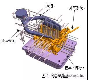 1. 實驗及模擬仿真 1.1產品模型及模擬條件 1.1.1 產品模型 如圖4所示,此次試驗以長城汽車某缸體為案例。缸體為汽車發動機結構承載部件,尤其缺陷位置需封密缸內高壓氣體與缸套冷卻水,要求具有較高的致密度。