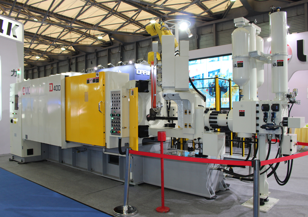 力勁D系列400T冷室壓鑄機(jī) 力勁D系列壓鑄機(jī)最具特色的設(shè)計(jì),系其壓射機(jī)構(gòu)采用高穩(wěn)固、高強(qiáng)度的D型結(jié)構(gòu)設(shè)計(jì),高強(qiáng)度一體鑄造D型架結(jié)構(gòu),剛性強(qiáng)、模板變形量小、受力均衡、有效避免應(yīng)力集中,壓射過程更加穩(wěn)定可靠。