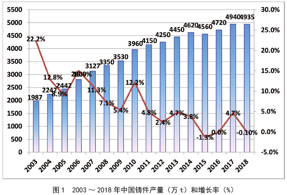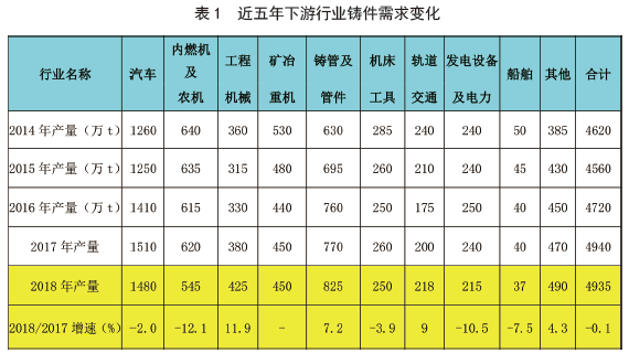 ![]() 多年來,美國鑄造協會《Modern Casting》雜志發布的世界鑄件產量數據中我國鑄件產量數據均是由中國鑄造協會進行大量調研統計計算后提交的。2019年3月11日的第十五屆中國鑄造協會年會上,中國鑄造協會執行副會長兼秘書長張志勇向近千名年會代表發布了2018年中國鑄件產量數據。 他說:“2018年中國各類鑄件總產量4935萬噸,與2017年基本持平;下游行業鑄件需求結構變化明顯。” 自2000年,中國鑄件產量整體呈正增長態勢;自2011年由“高速增長”轉化為“中低速增長”。在此期間,2015年出現1.3%的下降,2018年總產量較上一年略有下降(見圖1)。 從下游行業鑄件需求結構變化來看,2018年鑄管及管件、工程機械和軌道交通都有較高幅度的正增長,分別達到7.2%、11.9%和9%;通用機械中液壓件、泵閥類產品也保持了較高的正增長;汽車工業對鑄件的需求多年來出現首次下降,農機、發電設備及電力等多數行業對鑄件的需求都有較大幅度的下滑。得益于離心鑄管、工程機械、軌道交通、泵閥等通用機械及鑄件出口的帶動,2018年中國鑄件產量方能保持與上一年基本持平(見表1)。