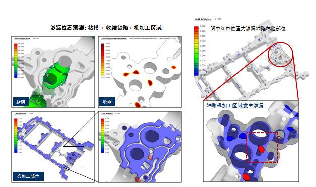 滲漏功能預測試壓泄露 滲漏缺陷作為鑄造生產中常見缺陷之一,廣受鑄造從業者的重視。所謂滲漏缺陷是指鑄件在壓力試驗(水壓或氣壓)中出現泄露現象。AnyCastingV6.6版本的滲漏模塊可通過綜合考慮鑄件粘膜位置、機加位置以及縮松體積等參數,精確預測鑄件試壓過程中可能存在的滲漏缺陷。