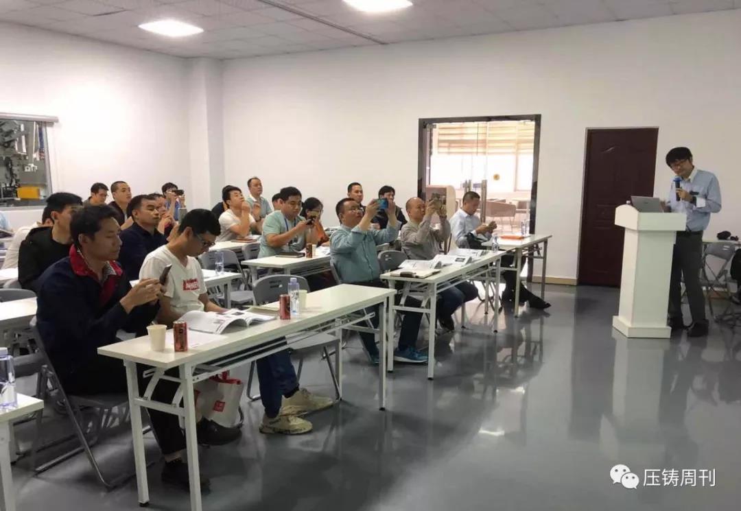 新臺(tái)通商總經(jīng)理邱坤彰先生發(fā)言 隨后,研習(xí)會(huì)正式開始,第一天的報(bào)告主題包括:壓鑄產(chǎn)業(yè)概述,鋅壓鑄件流紋分析和切線型流道設(shè)計(jì),超高速/超低速/高精度鋁壓鑄技術(shù)與特殊功能運(yùn)用,工業(yè)4.0壓鑄數(shù)據(jù)管理系統(tǒng)中舊機(jī)與新機(jī)集中數(shù)據(jù)管理案例,高品質(zhì)省能源鋁湯溶解技術(shù),高品質(zhì)熔湯處理技術(shù),鋁壓鑄模具設(shè)計(jì)與不良對(duì)策,高品質(zhì)壓鑄進(jìn)階技術(shù)與設(shè)備:點(diǎn)冷系統(tǒng)/局部擠壓鑄造/PF吹氧真空鑄造等。
