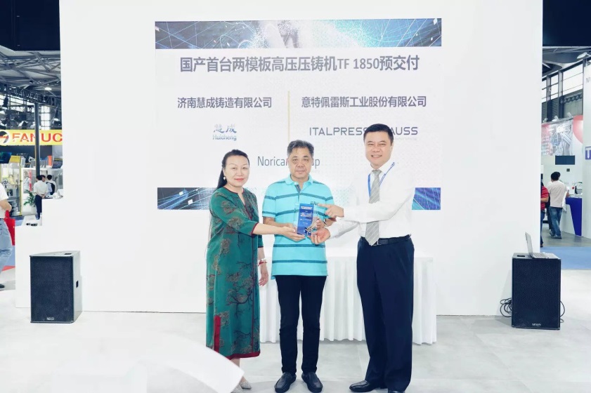 更值得一提的是,濟南慧成鑄造有限公司與諾瑞肯集團在展會現場舉行了“兩模板壓鑄機TF1850預交付儀式”。繼TF1850成功國產化之后,諾瑞肯將逐步完善意特佩雷斯全系列產品的本土化生產,并以中國常州工廠為意特佩雷斯高斯在亞太區域的生產制造和服務中心,更好地服務于本地客戶。濟南慧成的副董事長兼總經理劉燕嶺女士表示:“在意特佩雷斯購買的這款國產首臺TF1850,是我們與諾瑞肯集團建立長期良好合作關系的一個契機。諾瑞肯是在鑄造行業全方位的裝備型集團,我們也希望通過這次戰略合作能夠與諾瑞肯一起并肩攜手,共同為鑄造市場創造出更多更優秀的解決方案。”