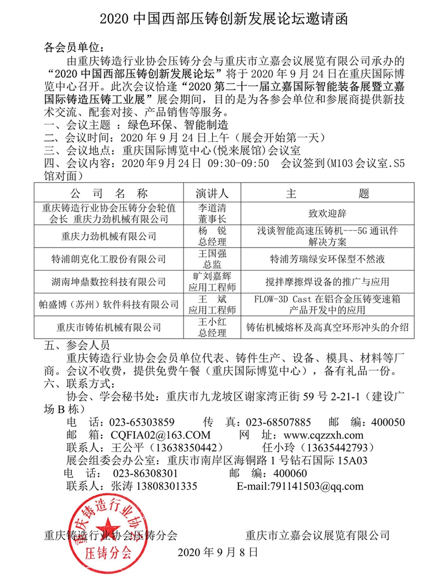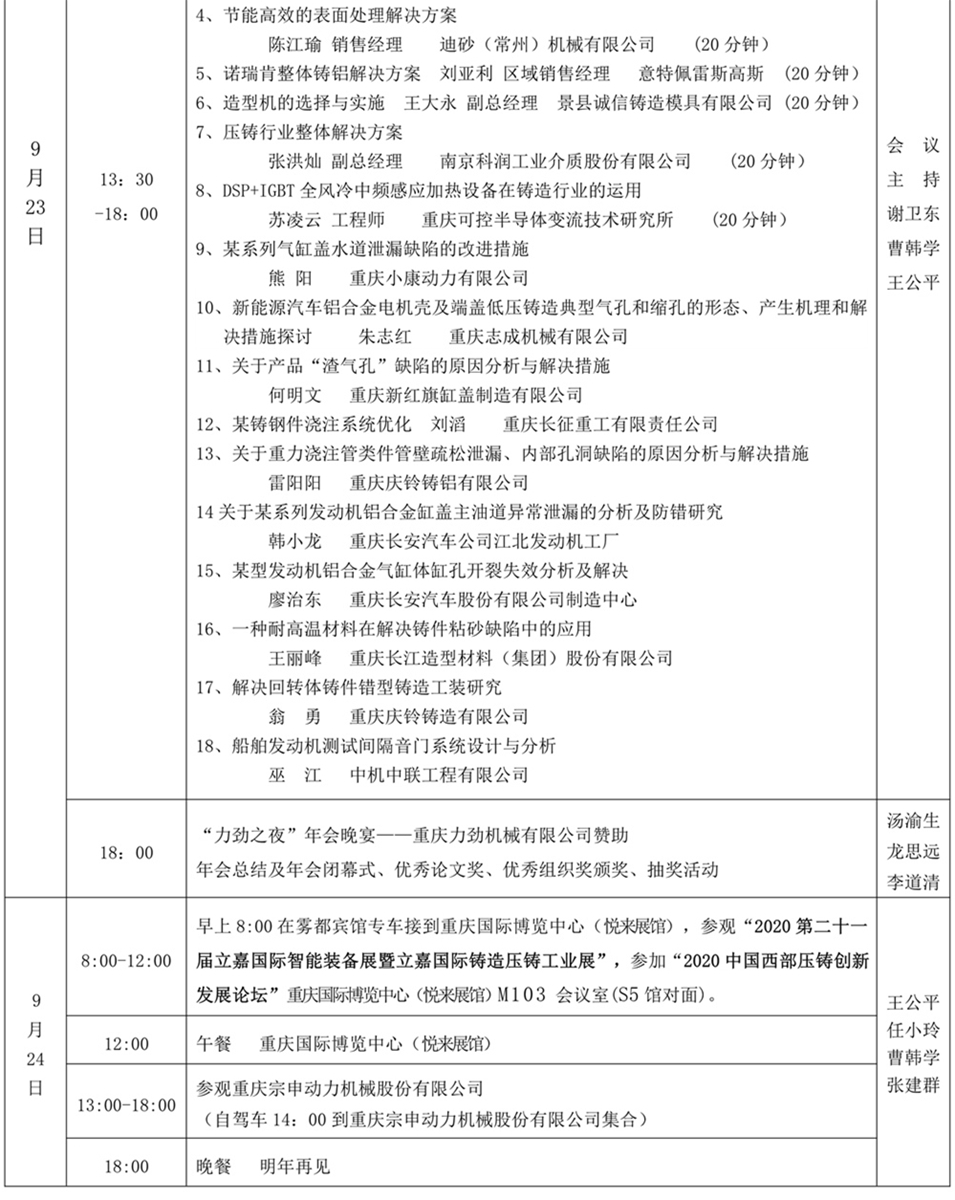 重慶地區鑄造及壓鑄年度大會議程“出爐”