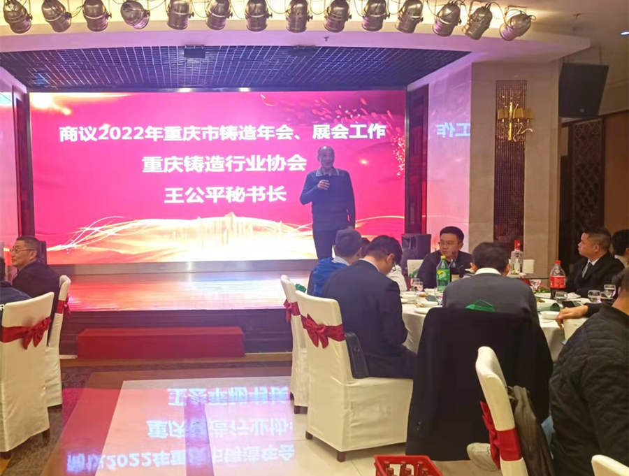 會上,重慶鑄造行業協會名譽會長曾平先生、黨支部書記羅衛東,重慶立嘉會議展覽有限公司副總經理劉鳳,重慶市機械工程學會鑄造分會秘書長趙建華分別致辭發言。重慶鑄造行業協會秘書長王公平介紹了協會明年的工作計劃,特別部署了2022年年會論文的征集、中國鑄造協會展會、立嘉展會工作。希望各位同仁積極參與2022年的協會、學會活動,推動協會、學會的工作,并在2022取得好的成績。