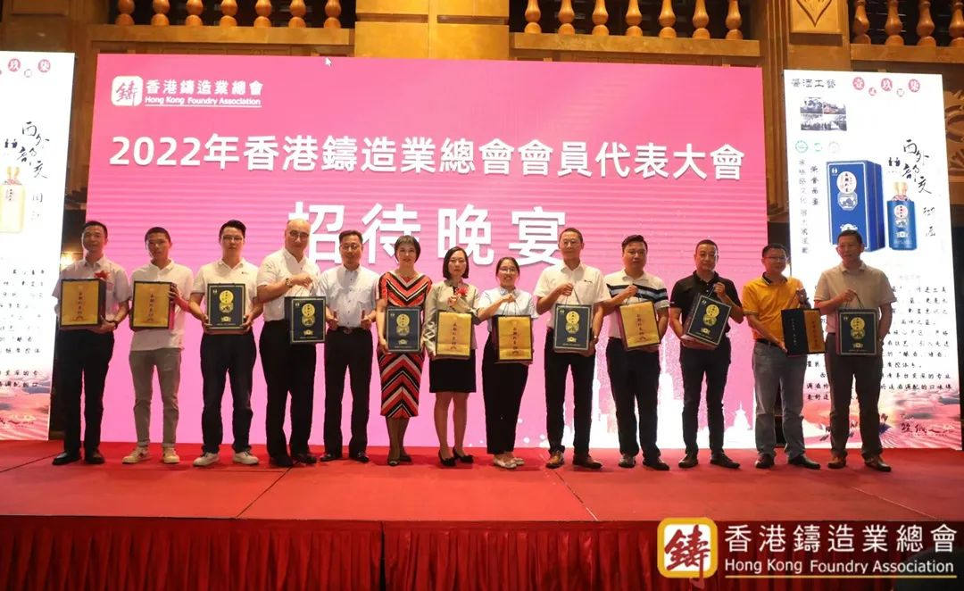 獲頒授盾牌及證書的會員企業 在過去兩年的時間,香港鑄造業總會會員隊伍不斷發展壯大。本次大會上,蔡子芳會長為東莞市徠孚化工有限公司、深圳市柳溪機械設備有限公司、東莞市和聯模具有限公司、永興實業(中國)有限公司、宏豐香港集團有限公司、大樂金屬制品(東莞)有限公司、東莞市合一五金制品有限公司、威鷹國際貿易(廣東)有限公司、廣東臺豐科技有限公司、上海震界自動化設備制造有限公司、東莞市旺佳五金制品有限公司、深圳市奧蘭特機城有限公司等會員企業頒發會員盾牌,并一一合影留念。