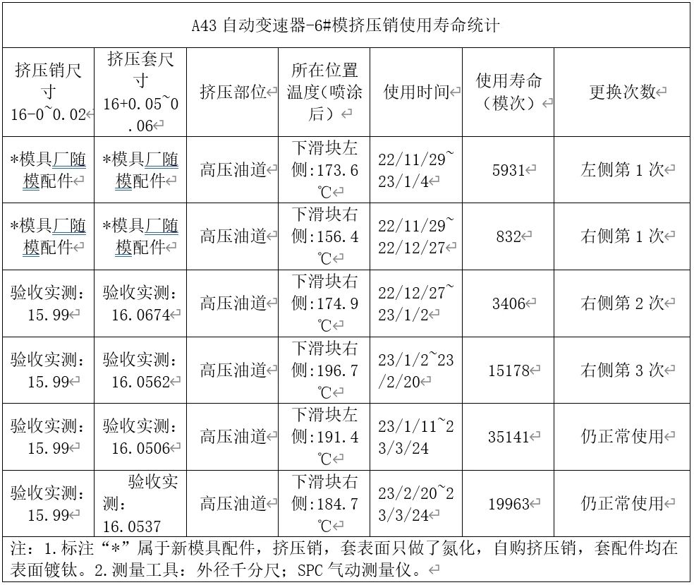 1)下“表4”是自動變速器左箱體模具擠壓銷的運(yùn)用情況