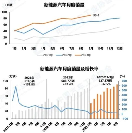 ![]() 昨日(10月11日下午),中國(guó)汽車(chē)工業(yè)協(xié)會(huì)(簡(jiǎn)稱(chēng):中汽協(xié))在北京發(fā)布9月汽車(chē)產(chǎn)銷(xiāo)數(shù)據(jù)及經(jīng)濟(jì)運(yùn)行情況。中汽協(xié)在發(fā)布會(huì)上介紹,今年三季度,汽車(chē)產(chǎn)銷(xiāo)整體表現(xiàn)好于預(yù)期。伴隨政策組合拳效應(yīng)逐步顯現(xiàn),我國(guó)經(jīng)濟(jì)運(yùn)行持續(xù)恢復(fù),積極因素累積增多,產(chǎn)需兩端繼續(xù)改善,企業(yè)對(duì)市場(chǎng)預(yù)期總體保持樂(lè)觀(guān),制造業(yè)景氣面較8月進(jìn)一步擴(kuò)大。 2023年9月,汽車(chē)產(chǎn)銷(xiāo)延續(xù)增長(zhǎng)態(tài)勢(shì),汽車(chē)產(chǎn)銷(xiāo)分別完成285萬(wàn)輛和285.8萬(wàn)輛,同比分別增長(zhǎng)6.6%和9.5%。其中,新能源汽車(chē)產(chǎn)銷(xiāo)創(chuàng)新高,9月產(chǎn)銷(xiāo)分別完成87.9萬(wàn)輛和90.4萬(wàn)輛,同比分別增長(zhǎng)16.1%和27.7%,市場(chǎng)占有率達(dá)到31.6%。 據(jù)公安部發(fā)布最新統(tǒng)計(jì)數(shù)據(jù),截至2023年9月底,全國(guó)機(jī)動(dòng)車(chē)保有量達(dá)4.3億輛,其中汽車(chē)3.3億輛,新能源汽車(chē)1821萬(wàn)輛。2023年前三季度,全國(guó)新注冊(cè)登記汽車(chē)1817萬(wàn)輛,同比增長(zhǎng)4.4%。 截至9月底,全國(guó)新能源汽車(chē)保有量達(dá)1821萬(wàn)輛,占汽車(chē)保有量的5.5%。其中,純電動(dòng)汽車(chē)保有量1401萬(wàn)輛,占新能源汽車(chē)總量的76.9%。一至三季度,全國(guó)新注冊(cè)登記新能源汽車(chē)519.8萬(wàn)輛,同比增長(zhǎng)40%,占汽車(chē)新注冊(cè)登記量的28.6%。截至9月底,全國(guó)有90個(gè)城市的汽車(chē)保有量超過(guò)100萬(wàn)輛,同比增加8個(gè)城市。 汽車(chē)產(chǎn)銷(xiāo)數(shù)據(jù)顯示: 今年9月,汽車(chē)產(chǎn)銷(xiāo)分別完成285萬(wàn)輛和285.8萬(wàn)輛,環(huán)比均增長(zhǎng)10.7%,同比分別增長(zhǎng)6.6%和9.5%。其中,乘用車(chē)產(chǎn)銷(xiāo)分別完成249.6萬(wàn)輛和248.7萬(wàn)輛,環(huán)比分別增長(zhǎng)9.7%和9.4%,同比分別增長(zhǎng)3.5%和6.6%。商用車(chē)產(chǎn)銷(xiāo)分別完成35.4萬(wàn)輛和37.1萬(wàn)輛,環(huán)比分別增長(zhǎng)17.9%和19.8%,同比分別增長(zhǎng)34.6%和33.2%。新能源汽車(chē)產(chǎn)銷(xiāo)分別完成87.9萬(wàn)輛和90.4萬(wàn)輛,同比分別增長(zhǎng)16.1%和27.7%,市場(chǎng)占有率達(dá)到31.6%。