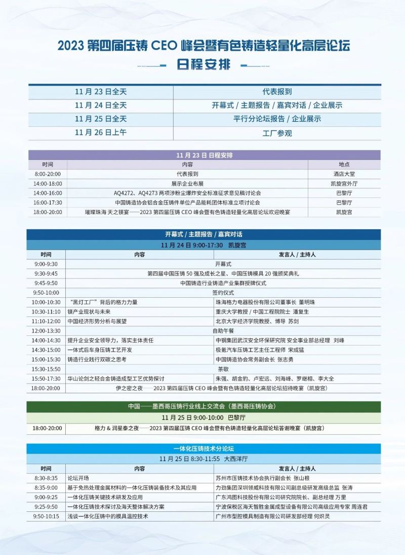 以下是2023第四屆壓鑄CEO峰會(huì)的最全日程,快來(lái)收藏~