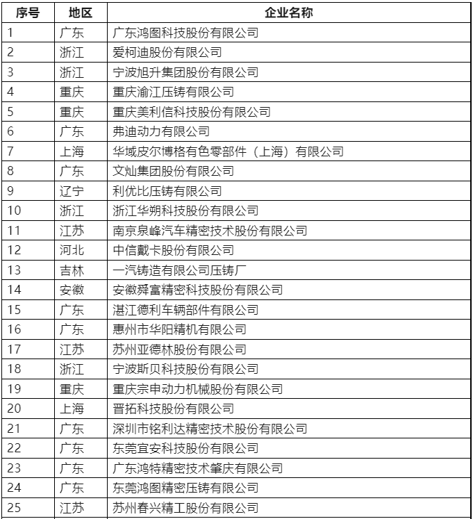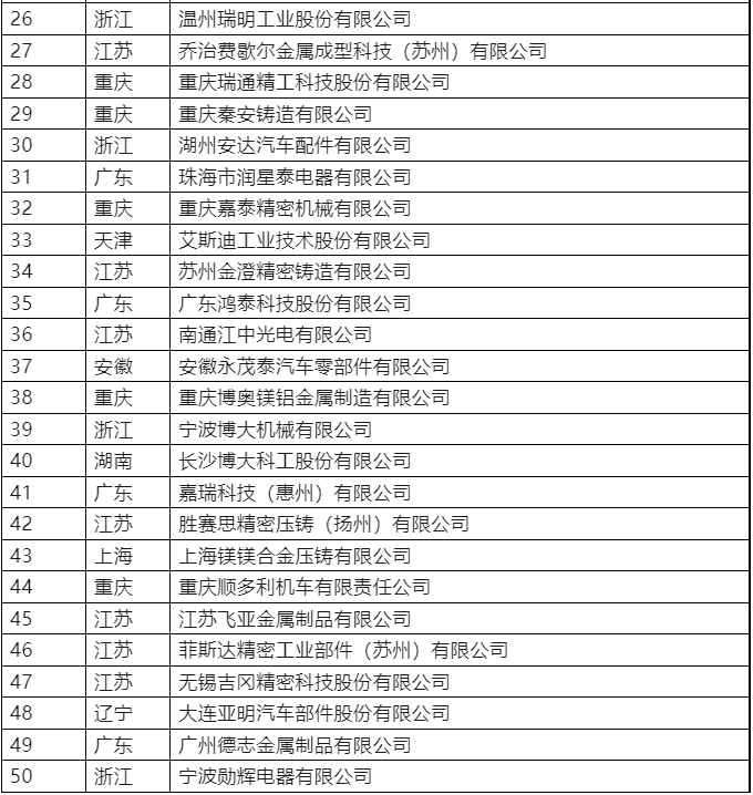 第四屆中國(guó)壓鑄50強(qiáng)和壓鑄模具20強(qiáng)企業(yè)名單 第四屆中國(guó)壓鑄50強(qiáng)企業(yè)