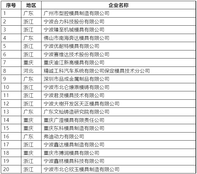 第四屆中國(guó)壓鑄模具20強(qiáng)企業(yè)