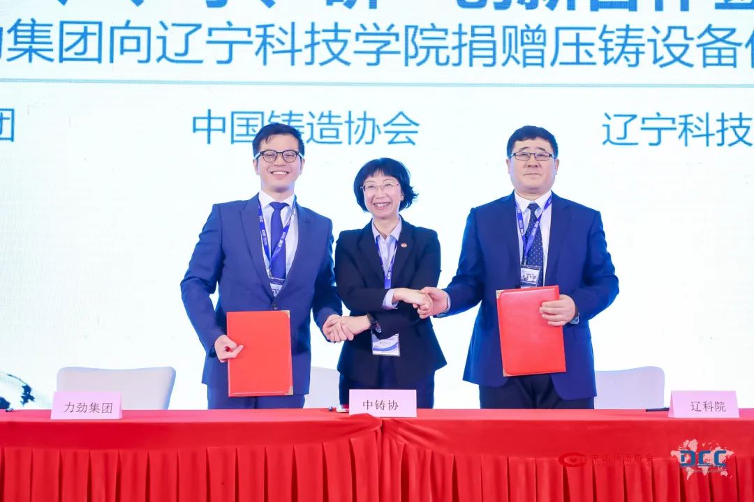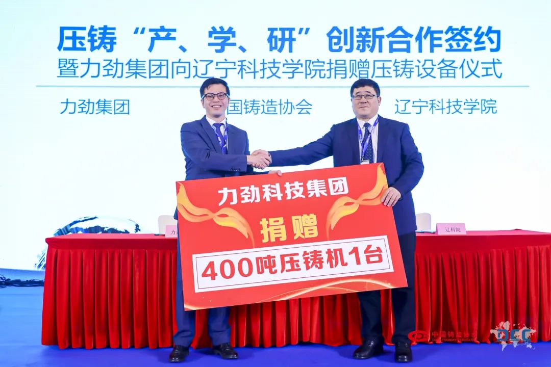 隨后,中國鑄造協會、力勁集團、遼寧科技學院共同舉行“產、學、研”創新合作簽約暨力勁集團向遼寧科技學院捐贈壓鑄設備儀式。通過整合壓鑄領域優質資源,以達到在教學、實訓、創新、交流等方面開展起密切的合作,三方將發揮各自優勢,互利合作,構建“協、企、校”共贏的共同體,從根本上促進產學研深度融合,為中國壓鑄領域培養高素質技術技能人才,推動中國壓鑄領域實現高質量和可持續發展。